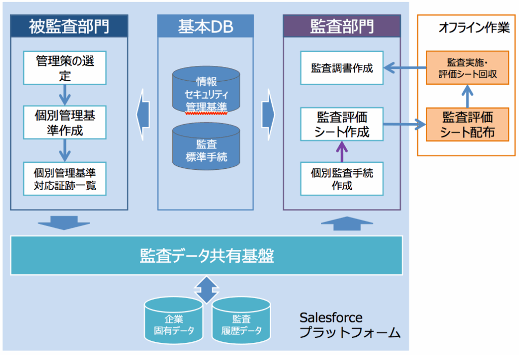 - 被監査部署が入力したシステム名や文書名等が、監査証跡欄に自動的に表示される等、被監査部署の個別詳細管理策の入力から監査人の監査意見形成まで一連の監査作業が一元化された環境で利用できます。